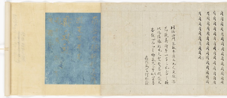 安倍文殊院は、蘇我氏が天智天皇と藤原鎌足によって滅ぼされた「乙巳の変」があった645年に建てられた寺。今回は、快慶作《文殊菩薩像》の像内から発見された国宝の経巻、文殊菩薩像像内納入品《仏頂尊勝陀羅尼・文殊真言等》を見ることができる。
