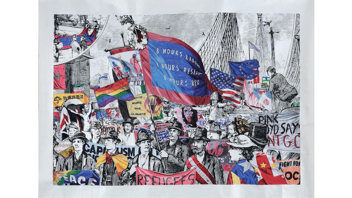 工業用ミシンを用いて、近代化以降変容し続ける人間性や労働の価値を問い続けながら、刺繍というメディアの枠を拡張させる作品を数々発表してきた青山。近年では17年に個展「News From Nowhere」(ミヅマアートギャラリー、東京)を開催したほか、「ヨコハマトリエンナーレ」(2017)や「Unfolding: Fabric of Our Life」(2019、Center for Heritage Arts & Textile、香港)などの芸術祭やグループ展にも参加している。