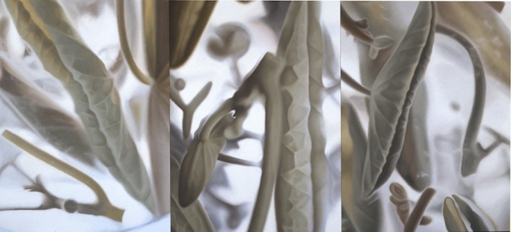 本展に参加するのは、樹木のある空間を紙の裏側から墨を滲ませた際の濃淡によって描画し、水墨画の伝統から新たな可能性を引き出してきた浅見貴子、柔らかい布、硬質な磁器など日常的なモチーフを取り巻く光に注目し、ものの存在を質感でとらえて描き出す伊庭靖子、気配や湿り気、植物の香りなど、ふとしたできごとを五感で受け止めてドローイングへとつなげる金田実生、樹木や風景を描画した上から絵の具で薄く覆い、画面のレイヤーを通じて幻想的な印象と物質感を往還する児玉靖枝、あるとき/ある場所の光や風をはらむ海や空や街路の情景をかけがえのないものとしてスケッチし、線とかたちと色相の響き合いへと置換する津上みゆき、樹々の間から見る空を樹木の複雑な構造を通して、画面上に生じる「空間」の不思議を問う日高理恵子、大気や水に満たされた大きな広がりを連想させる幻想的な世界を繊細かつ深遠な色調で表現する水村綾子。