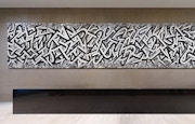 大山は誰でも通り抜けが可能なロビーに、幅18メートルにおよぶ大型絵画や5枚組の作品などを展示。またビルの前のプラザ(広場)では、エントランスの柱にカッティングシートを用いてQTSを施工したパブリック・アートを展開している。