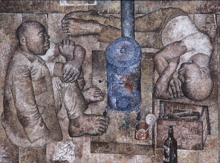 日勝は1937年東京生まれ。45年に空襲に見舞われ、一家で苦難を乗り越え北海道・十勝に入植する。日勝は東京藝術大学に進学した兄の影響で油彩を描き始め、56年には道内の美術展で《痩馬》が入選。以来、農業を続けながら画家の道を歩むこととなる。
