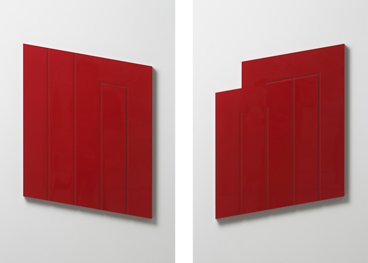 本展タイトルにもある「WOODCUTS」とは、「源氏香」と呼ばれる日本の香文化から着想を得た作品名。源氏香とは、組香と呼ばれる競技形式の香りの鑑賞方法のことで、順に炷かれた香りの異同を判ずるだけでなく、それを図案「源氏香の図」で示すもの。図案には、源氏物語の全54帖のうち52帖の巻名が付されていることから、源氏の名を冠した呼び名となった。