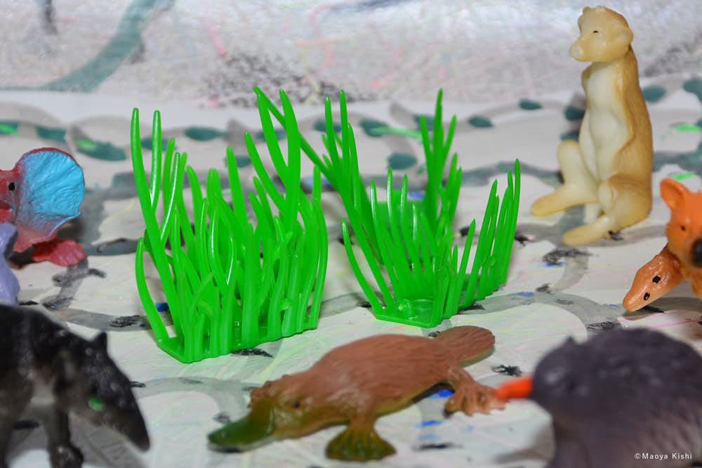また写真・映像作品は、どちらも空間を縦に走査することによって像を取得したもの。写真では、レンズであれば奥に行くにつれて生まれるはずの横幅の収縮が発生せず、いっぽう映像では、端の一列のピクセルが時間とともに固定され地層のように重なっていくことで走査の持つ時間性がより顕著に表れる。