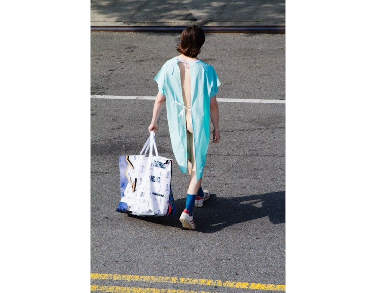 本展でDISは、M/M(Paris)やJ.W ANDERSONとのコラボレーションで知られる、⼋⽊沢俊樹によるバックブランド「TOSHIKI」との協働を実施。2008年のリーマンショックがミレニアル世代にもたらした経済的危機を描く映像作品《XOXO, SAFETY NET》シリーズから生み出された作品を発表する。