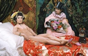加えて本展では、エドゥアール・マネ《オランピア》(1865)を題材とした新旧作が競演。白人の娼婦と黒人の召使いを、黄色人種の男性である森村が演じる初期代表作《肖像(双子)》(1988)から30年後、森村は若い娼婦を蝶々夫人を思わせる芸者の姿に、召使いを西洋男性の姿に変えて新作《モデルヌ・オランピア》を手がけた。また、同じくマネ晩年の作品を原作とする「フォリーベルジェールのバー」の最新作も発表される。