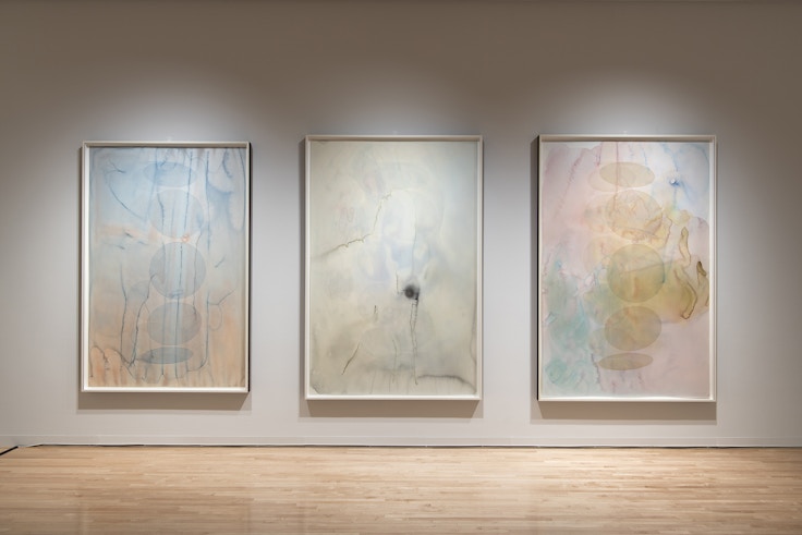 今回公開された展示風景には、新作であり本展タイトルと同名である《ときに川は橋になる》(2020)をはじめ、暗闇に虹を再現する初期の代表作《ビューティー》(1993)、過去20年間の氷河の大きな変化をとらえた《溶ける氷河のシリーズ 1999/2019》(2019)などが含まれておる。まずは画像でその様子を楽しみ、開幕を願いたい。