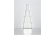 ミニマリスト運動の旗手として、「光」を使った作品を発表してきたアメリカ人アーティスト、ダン・フレイヴィン(1933-96)。8枚の四角いキャンバスに電球と蛍光灯を取り付けた「Icons(イコン)(1961-63)」シリーズで初めて「光」を使用し、その後、代表作である45度の角度で蛍光管を壁に取り付けた《The Diagonal of May 25, 1963(1963年5月25日の斜め線)》(1963)を発表。以降、4種類のサイズと10色の既製品の蛍光灯のみを素材として、これらをさまざまに配置した作品を生み出してきた。