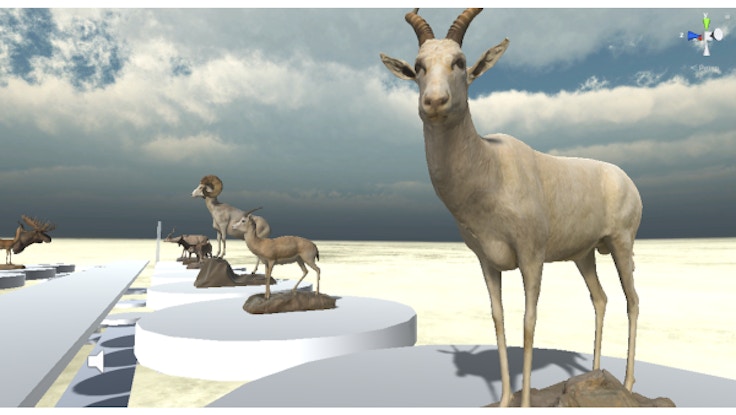公開中のVR博物館では、そのヨシモトが1992年に開館した幻の私設博物館「WILDLIFE MUSEUM」をイメージし、VR空間に再現。建物内部に入ると、広大なバーチャル空間が開けており、現時点では24体の剥製が並ぶ。