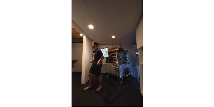 なお現在は、プレオープニング展として、コロナ禍へのリアクションとなるふたつの新作を起点として、ここ数年のトモトシの活動を概観する展覧会「ヘルニア都市5」を開催中(〜6月15日)。本展では、4月の展覧会に出展された2点の新作に加え、1点の新作映像や未発表作品なども見ることができる。