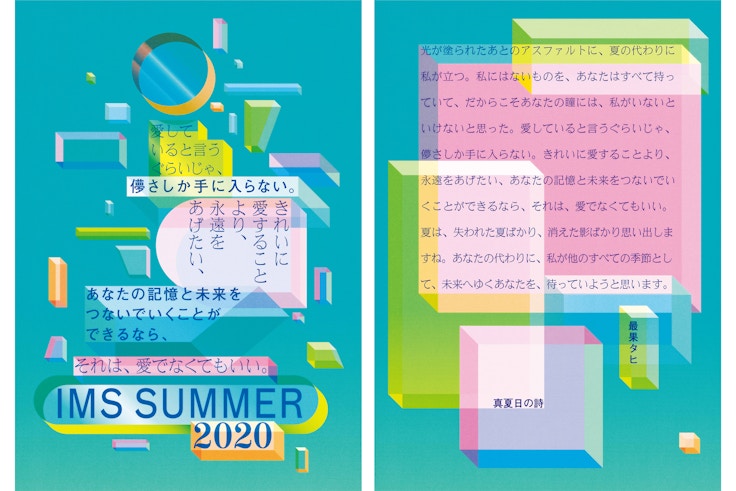 また7月10日から8月30日には、三菱地所アルティアムが位置する「イムズ」の館内各所でも詩のインスタレーションが展開される。最果が紡ぎ出す「詩になる直前」の言葉を介して、運動する言葉そのものと新しく出会う場となることだろう。