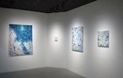 1階では、白基調の絵画シリーズの新作を展示。2階では、ここ数年取り組んできたという筆致の集積によって俯瞰的に複数の環世界を描く「天気図」シリーズのほか、新たに展開される「草木言語」シリーズを見ることができる。