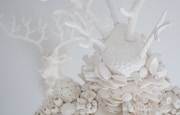 「絶妙なバランスで構築された微生物群によるミクロ世界の崩壊がマクロ世界へと連鎖していくこと、そして、人と動物と微生物の織り成す共生の世界の崩壊」というテーマで、世界的な規模で拡大するサンゴの死滅を題材とした同作。白く硬質な表面は終焉の気配や空虚な印象を感じさせるいっぽう、妊婦や鹿など生命力あふれるモチーフに、未来へのわずかな希望が託されている。