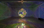 本展は、エリアソンの再生可能エネルギーへの関心と、気候変動への働きかけを軸に構成。光と幾何学に対する長年の関心が反映された彫刻作品や、自然現象を再構成したインスタレーションなどを見ることができる。また最初期の代表作《ビューティー》(1993)の再構成のほか、アトリウムの吹き抜け空間で展開されるインスタレーション《ときに川は橋となる》(2020)も必見だ。