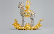 10周年を迎えた京都 ・伏見のスタジオ「Sandwich」を拠点に活動を続けている名和。今回の個展では、奈良国立博物館に収蔵されている14世紀に制作された《春日神鹿舎利厨子》へのオマージュとして、木彫漆箔仕上げの《Trans-Sacred Deer (g/p_cloud_agyo)》(2020、通称:雲鹿)を発表する。同作は、近年名和が取り組む、京都の伝統工芸復興プロジェクトの一環でもある。