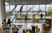 京都在住の金氏とスタッフの打ち合わせはすべてZoomで実施。金氏の指示書によって、京都から郵送された金物を学生たちが粉体塗装をする、あるいは作品に使用する「透明なもの」を長期にわたって収集するなど、協働作業が作品の一部となる。