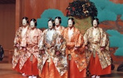 第二部では、二十六世観世宗家・観世清和師が、美女一行の舞と派手な激闘といった構成で初心者でも親しみやすい『紅葉狩 鬼揃』を上演。コシノジュンコは、本作の舞台装置と主役の装束の一部をデザイン・制作したという。