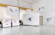 メインルームでは、光や速さ、構図や色への繊細なアプローチが特徴の作品群を展示。それぞれに独立した存在に見える作品は、リズミカルな流れで展示されることで、まるで人が現れては消えていく風景のようなイメージを引きだす。