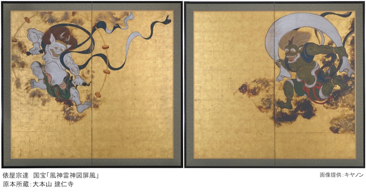 また5大絵師の代表的な作品に加え、狩野派や平家物語、源氏物語といった豪華絢爛な金屏風など約45作品を紹介。会期中の奇数日・偶数日で作品が変わるダブルプログラムで上映予定となっている。