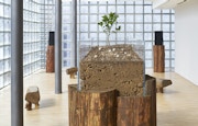 もうひとつの空間は、「カッティング」を植物の「挿し木・接ぎ木」として参照し、有機体を展示空間に移植することなどで、人工的に生命を育む生態系を暗喩するものだ。この空間では、急進的なミニマル・ミュージックの巨匠のひとりであるフィル・ニブロックが本展のために書き下ろした音楽も流されている。