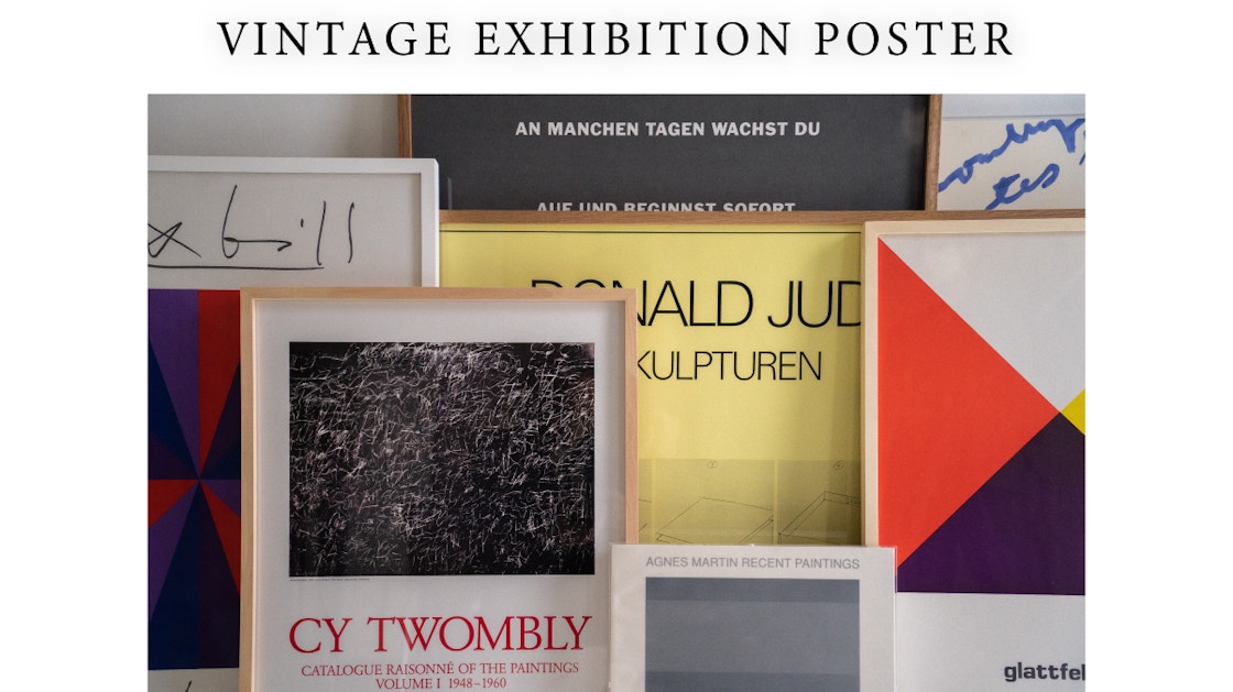 会場では、サイ・トゥオンブリーのガゴシアン・ギャラリー(ローマ)で開催された個展のオリジナルポスターや、ドナルド・ジャッドの1976年のクンストハレ・ベルリンでの個展のポスター、ニューヨーク⼤学で開催されたフランク・ロイド・ライト回顧展のポスター(インビテーション)など、約30名のポスター、およそ50種がラインナップ。