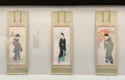 本展は、女性の姿かたちや所作、いで立ちだけでは決して成立しない清方作品の個性に着目するもの。出品作は日本画のみで、その数は110点に上る。なかでも見どころとなるのは、2019年に44年ぶりに公開された三部作《築地明石町》(1927)《新富町》《浜町河岸》(いずれも1930)だ。さらに、清方が毎回力作を出品したグループ展・七絃会展の出品作《鐘供養》(1934)、《雪粉々》(1937)なども公開されている。