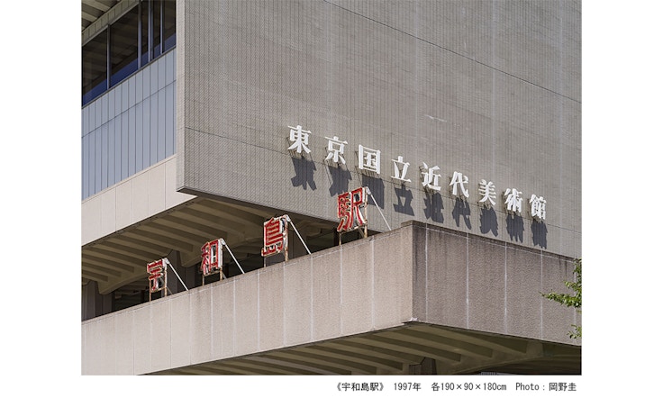 なお、会期中は東京国立近代美術館のテラス部分に「宇和島駅」のネオンサインを作品にした《宇和島駅》(1997)が設置。大竹が宇和島駅舎のリニューアルにともない古いネオンサインをもらい受けたことで生まれた作品で、過去の大規模個展でも会場の美術館に設置されてきた。その郷愁を誘う姿を、美術館で目撃してほしい。