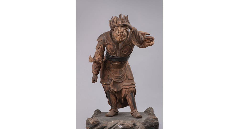 本展では、運慶および運慶工房が手がけたと見られる仏像を中心に、前後する時代の仏像や書跡など約50点の文化財が揃う。なかでも見どころは、浄楽寺に安置されている運慶の数ない真作のうちの2駆、《毘沙門天立像(びしゃもんてんりゅうぞう)》と《不動明王立像(ふどうみょうおうりゅうぞう)》の展示となっている。