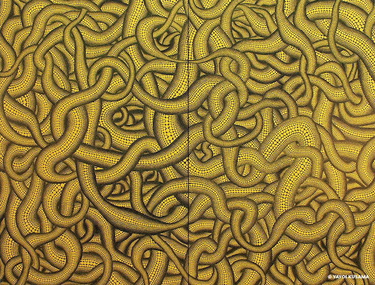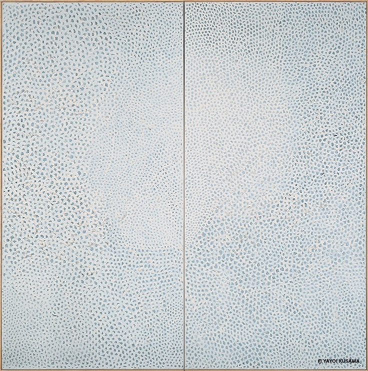 展示は草間の初期作品から最新作まで、年代とテーマ別に構成。絵画からインスタレーション、彫刻、ドローイング、コラージュ、動画、記録資料までをカバーしており、「無限」「蓄積」「ラディカル・コネクティビティ」「バイオコスモス」「死」「生命の力」という6つのテーマを通して、日本からアメリカ、ヨーロッパ、そして世界へ展開していった草間の活動を検証するという。また、草間は本展のために大規模インスタレーション《Death of Nerves》を含む3つの新作を披露する。
