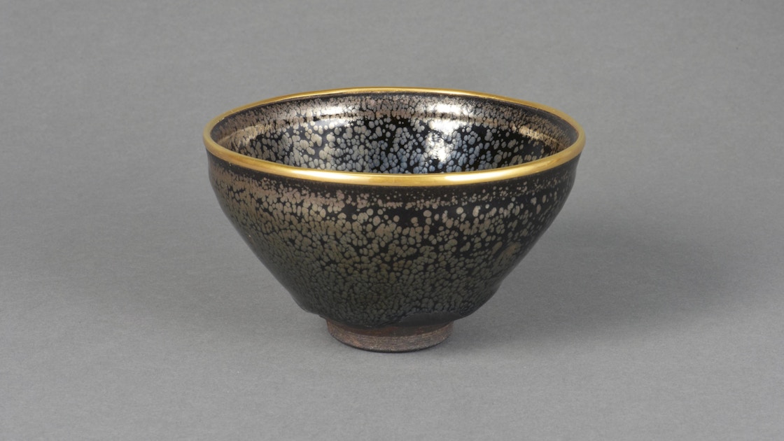 第3章「中国陶磁室」では、宋、元、明時代を中心とする中国陶磁を紹介。昭和40年代に入手した鴻池家伝来の国宝《飛青磁 花生》、酒井家伝来の国宝《油滴天目 茶碗》、加賀前田家伝来の重要文化財《木葉天目 茶碗》といった伝世の茶の湯の名品のほか、北宋時代の宮廷用の汝窯青磁や各名窯の優品なども見どころとなる。
