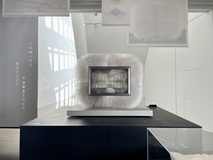 例えば、ひとつずつの細部が集合することにより大きな全体像が生み出されるというヘザウィック・スタジオのデザインコンセプトを反映した最初の「ひとつになる」セクションでは、2010年上海万博でパビリオン・デザイン部門の金賞を受賞した、アクリルの細い棒6万本からなる《上海万博英国館》や、204の国・地域名が刻んだ花びらのようなオブジェによって構成された《ロンドン・オリンピック聖火台》など、スタジオの代表作を見ることができる。
