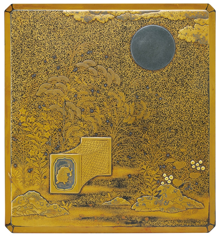 3章「やまと絵の成熟─南北朝・室町時代─」では、水墨画に対抗するかのように、多彩な色目と金銀加飾を使うようになったやまと絵を紹介。広島・浄土寺の国宝《源氏物語図扇面貼交屛風》(16世紀、室町時代、展示期間10月11日〜11月5日)は、画面の隅々まできらびやかだ。また、文学も様々に発展したのがこの時代となる。優れた画技が見られる重要文化財、伝土佐光信筆《百鬼夜行絵巻》(16世紀、室町時代、京都・真珠庵蔵、場面替えありで通期展示)や、和歌のフレーズを隠す葦手という手法が特徴の東博の重要文化財《砧蒔絵硯箱》(15世紀、室町時代)など、時代を象徴する名品が集う。
