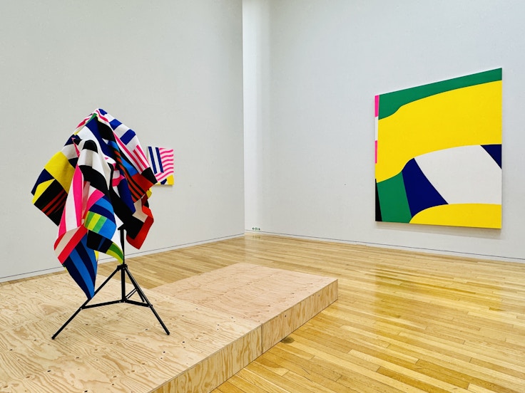 本展は2022年に丸亀市猪熊弦一郎現代美術館で開催された、美術館における初個展を東京に巡回するものだ。東京会場では、ストライプの絵画に至る過程ともいえる作品群を新たに追加。初期作品から新作までの絵画を中心に、立体作品や舞台映像作家・山田晋平との共作による映像作品、インスタレーション、ファッションブランドとのコラボなど、様々な表現技法で制作された作品群が紹介される。