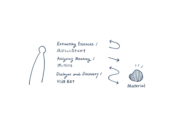 また展覧会ディレクターの吉泉は、環境破壊や地球資源の様々な問題を抱える現代社会は、人が地球環境との対話をおざなりにし、一方的に管理しようとした結果であるとも考える。本展では、「マテリアル」に「素材」という意味が生まれる際の多様な方法を入り口に、人間以外の様々なものとの関わりあいのなかで発生するマテリアルのとらえ方や、そのデザインの可能性についても提示されるという。