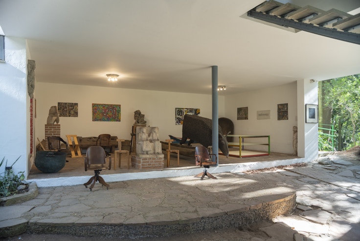 会場のCasa de Vidroは1951年、ボ・バルディが初の建築プロジェクトとして完成させた作品であり、ボ・バルディが亡くなる1992年まで自身の私邸として使われていた。生前はボ・バルディの、没後はバルディ研究所のディレクションのもと、アーティストや建築家、知識人たちの集う場となっている。