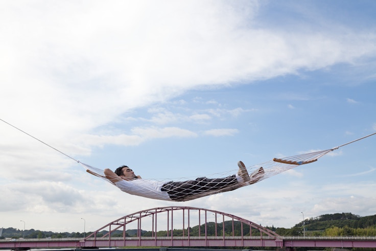 菊地は、「フリークライミング」の手法で自らの身体を用いて風景に介入し、そのパフォーマンスの様子を写真や映像に記録するアーティストだ。今回舞台となるのは高滝湖畔、養老川流域に存在する建造物やモニュメント。本展では、高滝湖を一望できる大きな窓のある展示室を拠点に、美術館周辺の外の空間にも作品が展開される。