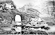 ニューヨークを拠点に活躍し「川」をテーマとした作品も多く手がける大岩は、千葉県を代表する河川でもある養老川に着目。暴れ川と呼ばれるいっぽうで肥沃な土壌を形成したこの河川をきっかけに、養老渓谷からコンビナートが林立する工場地帯へと流れる風景のダイナミックな変化を、虚実入り混ぜながら、全幅12メートル、高さ3メートルの巨大な壁画に描き出すという。