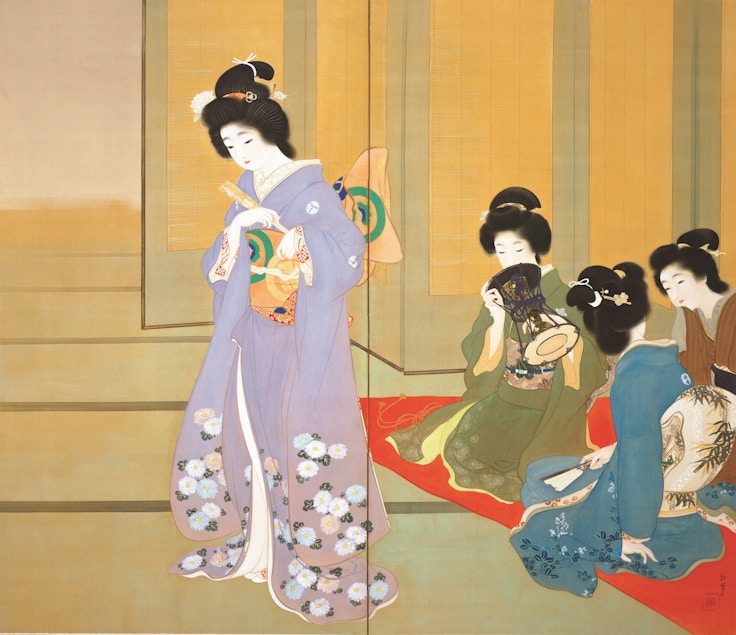 なかでも、土田麦僊(つちだ・ばくせん)や小野竹喬(おの・ちっきょう)、野長瀬晩花(のながせ・ばんか)、岡本神草(おかもと・しんそう)など新世代の画家たちは、まだ誰も見たことのない日本画を創造しようと、竹内栖鳳(たけうち・せいほう)、上村松園(うえむら・しょうえん)などの先輩画家たちとともに試行錯誤した。