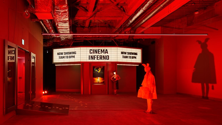 このインスタレーションは、メゾンのクリエイティブ・ディレクター、ジョン・ガリアーノが構想した物語『シネマ・インフェルノ』に基づいたもの。昨年7月、パリのシャイヨー宮での2022年「アーティザナル」コレクションの発表において、ジョン・ガリアーノはイギリスの演劇カンパニー、Imitating the Dogとコラボレーションし、この物語をオートクチュールと映画、演劇が一体化したアッサンブラージュ・パフォーマンス作品として完成させた。