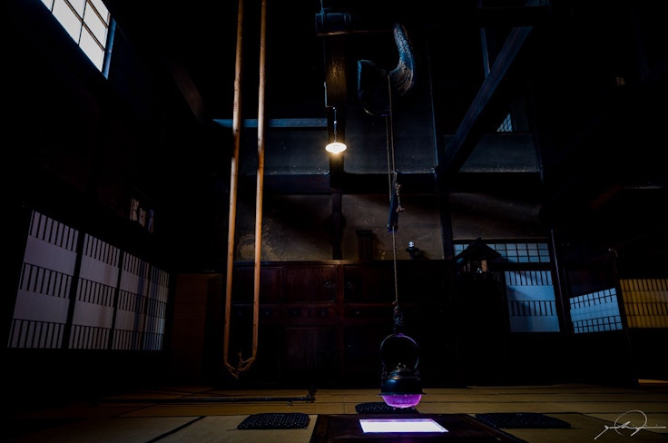 重要文化財である日下部家住宅は、1966年より日下部民藝館として建物の公開と日下部家所蔵の文物の展示、建物を活かした多様な文化事業を行ってきた。2021年より落合と始まったこのプロジェクトは、飛騨の地で育まれてきた歴史や自然、伝承された数多く物語を考察することによって浮かび上がったモチーフを、落合が探求している「デジタルネイチャー」の思想と掛け合せ、同館の空間全体を用いてインスタレーション表現をするものとなっている。