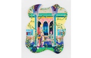 新作のなかでは、日本初公開となる極彩色の立体作品2点《Mother Other》《This is What It Feels Like ED.2》(いずれも2023)が出品。嵌玉眼(かんぎょくがん)や京都の截金(きりかね)職人による截金文様などの伝統技法と、FRP にポリウレタン塗装という、新旧の彫刻技法が融合されることで生まれた作品だ。加えて、洋の東⻄や時代を超える多種多様なイメージ群のコラージュから生まれた緻密な絵画や、パブリック・アートとして屋外設置されることも多いステンレス・スチール製の立体作品といった松山の代表的な作品も展示される。