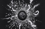 展示会場も注目ポイントだ。昨年末に逝去した建築家・磯崎新(1931〜2022)の設計による同館の現代美術棟を使った会場では、展示室から展示室へ、描くこと/書くことの起源と未来を求めて、人類最古の壁画が残された洞窟から人知を超えて生成と消滅が繰り返される宇宙空間へと、鈴木による線を連ねていく。