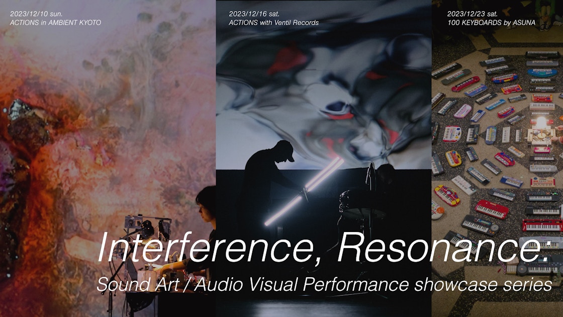 「Interference, Resonance」は「ACTIONS in AMBIENT KYOTO」(12月10日)、「ACTIONS with Ventil Records」(12月16日)、「100 KEYBOARDS by ASUNA」(12月23日)の3企画で構成される。
