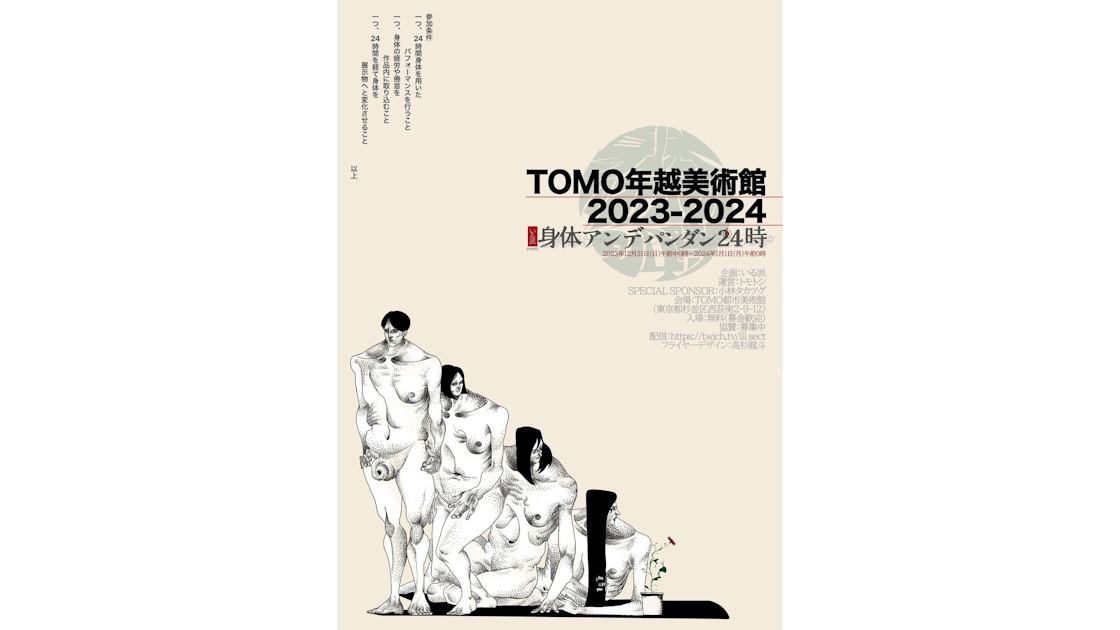 東京・西荻窪にあるTOMO都市美術館の大晦日恒例行事ともなっている「TOMO年越美術館 2023-2024 いる派 PRESENTS 身体アンデパンダン24時」が今年も12月31日0時より24時間限定で開催される。