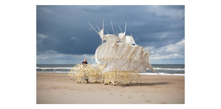 芸術家、発明家、科学者の顔を持ち、「現代のレオナルド・ダ・ヴィンチ」と称されるテオ・ヤンセン。代表作 「ストランドビースト(strand beest)」は、プラスチックチューブや粘着テープなど身近な材料でつくられており、風力を用いて歩行するものだ。