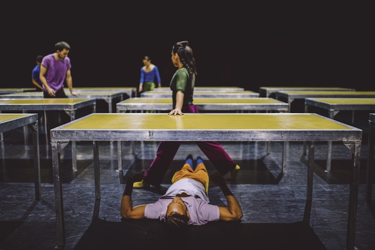 舞台上に、轟音を立てて大きな机20台がダンサーとともに現れる。ダンサーはランダムに出入りしながら、複数の規則に基づいて、休みなく踊り続ける。「テーブルダンス」という名称で親しまれるウィリアム・フォーサイスの代表作のひとつであり、世界の多数のバレエ団のダンサーによって踊られている。彼が追求したバレエの脱構築の先にあるテクニックと、緩急、ダンサーと舞台空間の緻密な設計を見ることができるスリリングな作品。