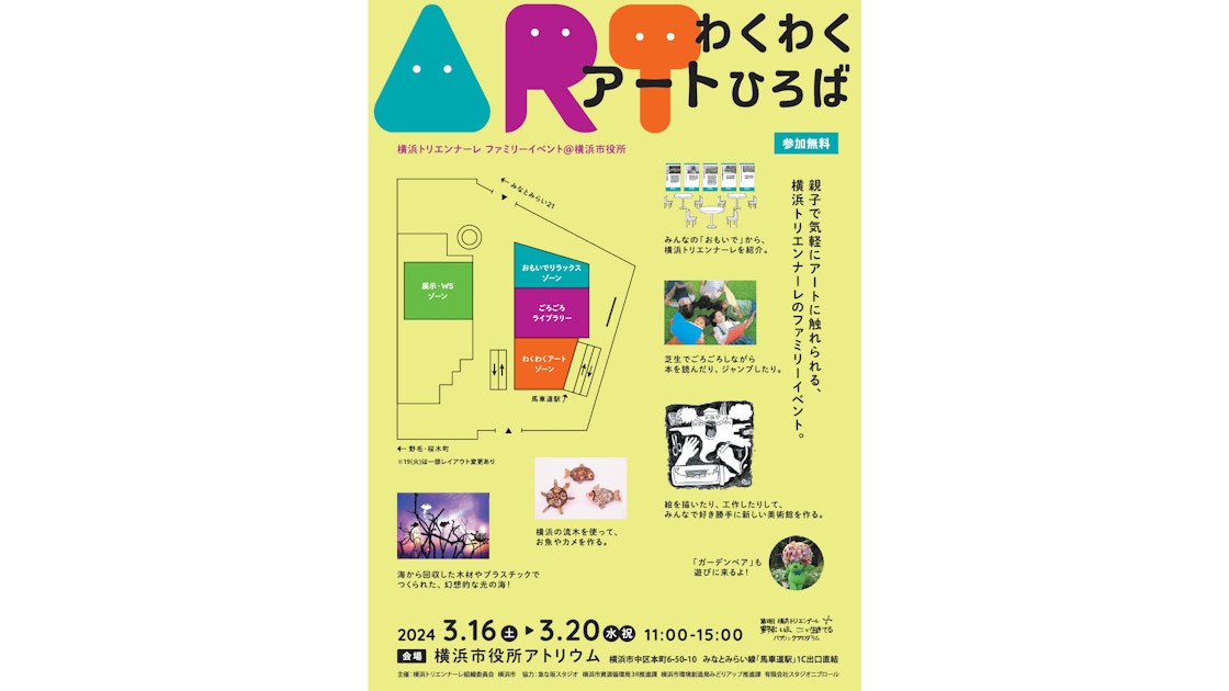 親子でアートに触れられる横浜トリエンナーレ(3月15日〜6月9日)のファミリーイベント「わくわくアートひろば」が横浜市役所アトリウムで開催される。会期は3月16日〜20日。