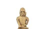 第4章「国宝 挂甲の武人とその仲間」は、本展の白眉となる章だ。初めて国宝に指定された埴輪である《挂甲の武人》には、同一の工房で制作された可能性も指摘される、よく似た埴輪が4体ある。本章はこの5体が史上初めて揃う貴重な機会だ。群馬・相川考古館、千葉・国立歴史民俗博物館、奈良・天理大学附属天理参考館、そしてアメリカ・シアトル美術館にそれぞれ所蔵されている《挂甲の武人》が一堂に会すことで、その共通点や差異を堪能することもできるはずだ。