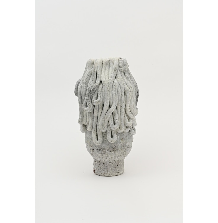 安永は祖母の死に際し、その死を忘れないという思いのもと、火葬したあとの遺灰で釉薬をつくり、白磁を焼いたという。器をつくるなかでも一貫して焼成を探求しており、2012年からは釉薬のみでの造形を開始。15年には⻑男の誕生をきっかけに、それまでにはなかった生命の容れ物としての「Empty Creature」シリーズをつくり始める。23年には、銀座メゾンエルメス フォーラムで、エマイユ(釉薬)をテーマに開催されたグループ展「エマイユと身体(からだ)」に参加。大きな注目を集めた。