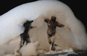 マチルド・モニエとヴィジュアル・アーティストのドミニク・フィガレラとの協働作品『ソープオペラ』(2010)。そこから発展させた、舞台上に広がる巨大な泡の塊にダンサーたちがコンタクトしていくパフォーマンス『ソープオペラ、インスタレーション』(2014)は10月18日~20日にロームシアター京都 ノースホールにて。