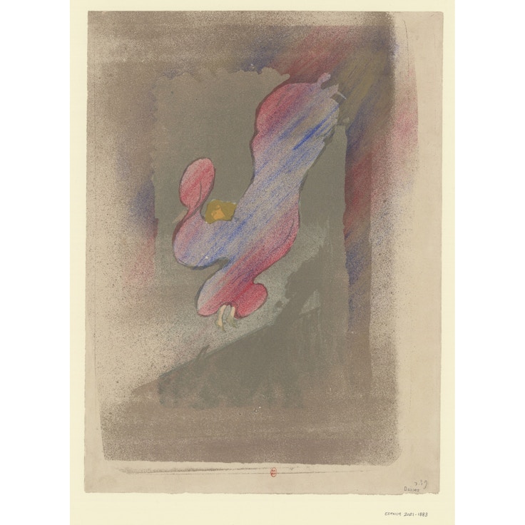 会場では、同館のコレクションからロートレックによるポスター32点(バージョン違いを含む)とともに、刷りの異なる2点の《ロイ・フラー嬢》(1893)をはじめとする主要版画作品も公開。さらに、フランス国立図書館から借用した版画作品11点を加えた136点を展示し、ロートレックの作品を「不在」と「存在」の視点からとらえ直す機会を生み出すという。